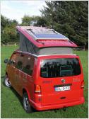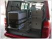 Die Vorgaben des Kunden für Lohs Arbeit waren klar. Ein Dachgepäckträger musste auf den California, der einerseits das Solarpanel aufnimmt und zur Mitnahme von zwei je 20 Liter fassenden Reservekanistern dient. Ins Fahrzeug wanderten ein Zusatzakku, ein Sinuswandler 230 V (1.000 W) und ein Kompressor zur Befüllung der Reifen. Solarregler, Ladegerät, der Kompressor sowie die Steckdosen (USB,12 und 230 V) sind so im Fahrzeug installiert, dass sich das Regelsystem leicht ausbauen lässt. Der Preis für die Ausbauregale liegt bei etwa 6.500 Euro, komplett ausgestattet wie beschrieben sind rund 12.000 Euro fällig. Weitere Infos: www.exkab.de.