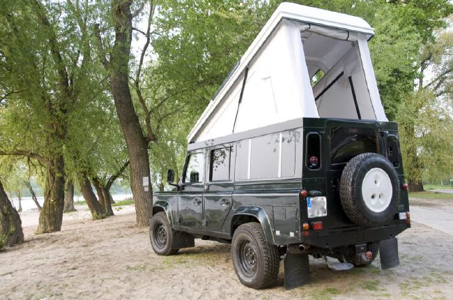 Fürs leibliche Wohl ist ein zweiflammiger Origo-Spirituskocher an Bord, die Verpflegung kann einer 26 Liter fassenden Kompressor-Kühlbox entnommen werden. Und selbst eine tragbare Toilette hat Orangework im Defender noch untergebracht. Am Heck sorgt eine Hannibal Markise für Erweiterung des Lebensraums. Geschlafen wird im aufstellbaren Dach (Kosten: 6.380 Euro), der Möbelbau von Orangework ist ab 12.600 Euro zu haben (Kosten der Technik: Je nach Ausstattung).