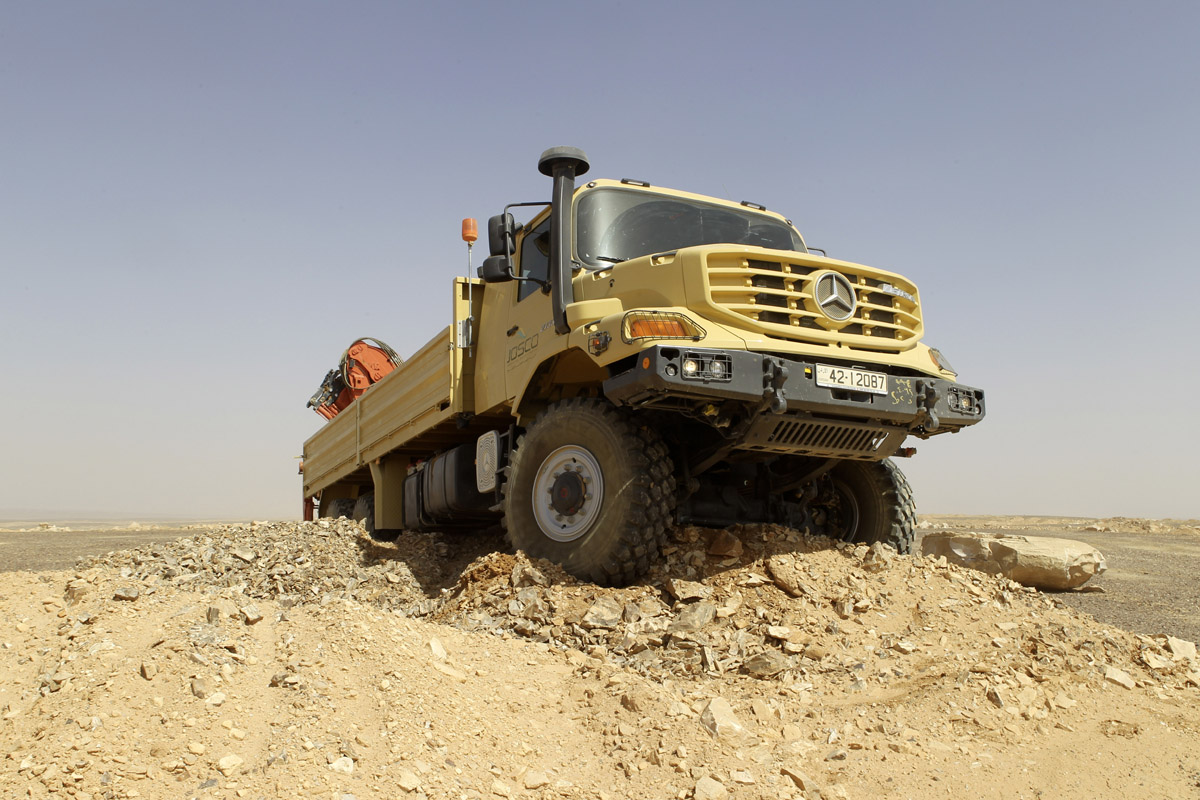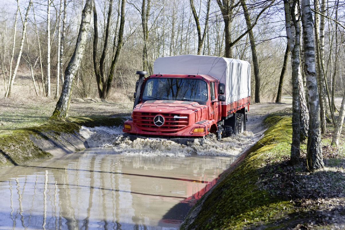 In der Praxis, verspricht Mercedes, solle der Fahrer am Volant eines 4 x 4-Frontlenkers einen anspruchsvollen Offroad-Parcour härterer Natur mit einiger Anstrengung nur ungefähr halb so schnell bewältigen können wie am Steuer eines 4 x 4-Zetros. In der Praxis resultieren daraus für den Hauber ein generell entspannteres Fahren im Gelände und höhere Konditionsreserven sowie schnellere Umlaufzeiten auf weiten Strecken. So trifft der Mercedes-Benz Zetros immer dann besonders schnell und sicher am Zielort eintreffen, wenn es im wörtlichen, oder auch übertragenen Sinne, brennt: Bei eiligen Missionen von Feuerwehr oder Rettungsdiensten zum Beispiel oder auf Baustellen und im Energiebereich und Tagebau in schwerem Geländeanspruch.