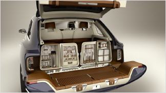 Das untere Segment der zweigeteilten Heckklappe kann als Sitzbank oder Picknicktisch genutzt werden. Schienen erleichtern den Zugang zu maßgeschneiderten Picknickkörben, die zu beiden Seiten der Ladefläche verstaut werden können. Ein Stoffsegel lässt sich über die Heckklappe ausspannen und schützt dort sitzende Personen; im Gepäckraum finden auf beide Seiten zwei Regenschirme Platz.
