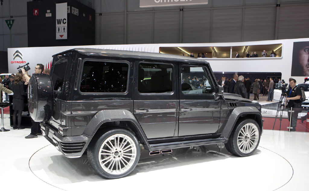 Das Exterieur ist bis zur unteren Fensterkante, ebenso wie das Dach des Geländewagens, aus ultraleichtem und hochfestem Carbon gefertigt. Das Carbon wird im Autoclav-Prepreg-Verfahren in einer speziellen Druckkammer so stark verdichtet, so bleiben keine Lufteinschlüsse im Werkstoff. Üblicherweise kommt diese kostenintensive Verarbeitungsmethode in der Luft- und Raumfahrt zur Anwendung.