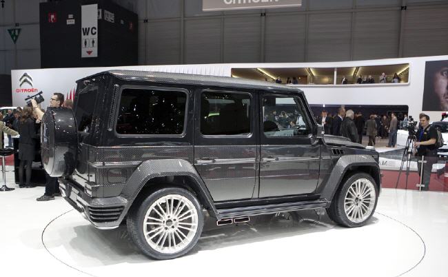 Im Innenraum ersetzt Mansory die Rückbank durch zwei Einzelsitze. Die Mittelkonsole reicht durchgängig vom Fond bis zum Cockpit. Für die hinten sitzenden Passagieren bietet sie integrierte und ans DVD-Entertainment-System angeschlossene Monitore. Das Interieurs ist mit Leder bespannt. Die Veredelung des Fahrgastraums findet ihre Fortsetzung in Applikationen aus echtem Pythonleder in Silber und G-Couture-Logos in den Kopfstützen. Klar, dass damit wohl kaum jemand ins Gelände gehen wird – aber schön zu wissen, dass man könnte, wenn man wollte.