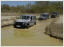 Dennoch nehmen sich die Instruktoren von Mercedes-Benz Offroad Zeit für eine kompetente Einweisung in die Grundlagen der Fahrzeugtechnik. Sinn und Zweck der Untersetzung werden ebenso erläutert wie die Funktion der Sperren, die Lage der entsprechenden Schalter wird jedem Fahrzeuglenker erläutert. Und dann geht es los. Im Stundentakt werden die Fans des „G“eländewagens mit dem Stern auf die Strecke geschickt, jeweils ein halbes Dutzend Fahrzeuge dreht seine Runden. Mindestens zwei Personen sitzen in jedem Professional, hier und da hat auch mal eine ganze Familie Platz genommen. Das Rollenverhalten ist überwiegend klassisch, meist dreht der Mann die erste Runde. Alles geht überraschend leicht über die Bühne, Fahrer wie Beifahrer(in) sind verblüfft, mit welcher Leichtigkeit der G Professional alle Hindernisse meistert. Per Funk sind alle Wagen mit dem Instruktor im ersten Fahrzeug verbunden, der lediglich knappe Anweisungen und Tipps geben muss. Hier und da wird mal die Hinter- oder Vorderachs-Sperre aktiviert, das war’s. Der Professional steht in den Versionen Station-Wagen lang und als Kastenwagen für Fahreindrücke zur Verfügung, das Fahrgestell mit Pritschenaufbau ist in der Ausstellung zu sehen.