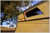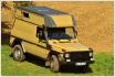 Ganz bewusst hat Kempf die Dachschale kurz gehalten, um Stabilität und Pistentauglichkeit zu erreichen. Der Anschlag des Elastomer-Scharniers befindet sich in Flucht mit dem Frontrahmen. So werden auftretende Kräfte direkt in Richtung der A-Säulen abgeleitet. Kempf verspricht, dass eine zusätzliche Belastung des als Modul angesetzen Kompakt-Alkovens nicht auftrete. Obendrein nimmt die Trennlinie die Karosserieform des Fahrzeugs auf, der G bleibt trotz Nase als G erkennbar. Typisch für 4x4Camp ist das in die Front des Dachaufbaus integrierte Paar von Doppelscheinwerfern. Die äußeren Scheinwerfer sind als Fern-, die inneren als Arbeitslicht geschaltet. Die Ecken des Kompakt-Alkovens mit seiner Seitenwand aus Aluminium sind mit Beschlägen aus Aluriffelblech versehen, um Schäden durch Äste und Buschwerk zu verhindern. Mit Hilfe von rechts und links am Dach angebrachten Airlineschienen lässt sich Ladegut sicher unterbringen. Preise gibt es von Wolfgang Kempf auf Anfrage.