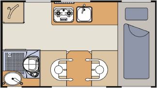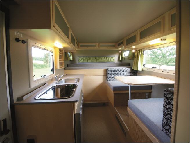 Die Kanine mit zwei Dachluken und fünf Fenstern ist in Sandwich-Bauweise gefertigt, mit Wand- und Dachstärken von 45 mm. Eine Tür verbindet das Fahrerhaus mit dem Wohnbereich und isoliert diesen gleichzeitig gegen die Kältebrücken der einfach verglasten Frontscheiben.