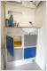 Ans Bad schließt sich zur Hecksitzgruppe ein halbhoher Schrank an, in dem der 65 Liter fassende Kompressorkühlschrank steckt. Er kann als Fernsehboard genutzt werden. Über dem Schrank ist das Kontrollboard installiert, das in bedienerfreundlicher Höhe Auskunft über die Betriebszustände des Fahrzeugs und die Füllstände der Tanks (148 Liter Frischwassertank, 80 Liter Abwassertank, beide Tanks sind frostsicher untergebracht) gibt.