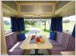 Die auf einem 25 cm hohen Podest ruhende Hecksitzgruppe kann durch Absenken des Automatik-Hubtischs zur Liegefläche (115 x 195 cm) umgebaut werden. Den Raum unter der Sitzgruppe nutzt Bimobil auf der Fahrerseite für die Unterbringung des Frischwassertanks und die Installation von Heizung und Elektroanlage. Auf der Beifahrerseite bleibt ein von innen und über eine Klappe auch von außen zugänglicher Stauraum. Knüller ist die schon Bimobil-typische große Heckklappe (Aufpreis 1.084 Euro), die aus der Sitzgruppe einen „Freisitz“ mit bestem Ausblick macht.