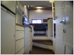 Aufbau als Kältebrückenfreie GfK-Sandwichkonstruktion mit Doppelboden, Wand- und Dachstärke 50 mm, Bodenstärke 60 mm, Deckschicht je 3 mm, Türen und Klappen mit GfK-Stufenprofil, KSD-Hohlgummidichtung und Mehrfach-Verriegelung, Außenstauraum im Schürzenbereich und unter dem Heckbett, elektrische Einstiegsstufe mit Automatik-Steuerung, KCT-Echtglas-Ausstellfenster, Dachluke Seitz Heki I, Dachluke Fan Tastic Vent, Fahrerhausdurchgang mit verschließbarer Tür, Dachträger auf Fahrerhaus