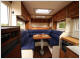 Möbelbau in 16 mm Sperrholz mit Teak-Echtholzfurnier, Alcantara-Sitzpolster, Heckbett mit Liegefläche 2.000 x 1.400 mm, Eberspächer Diesel-Warmluftheizung, Alde Warmwasserheizung, Batteriekapazität 440 Ah, Automatikladegerät 24 V / 70 A, Wechselrichter 3 kW, Solaranlage 350 W, Kontrollpanel mit Ampere-Stunden Zähler, Energiesparleuchten und LED-Spotleuchten, Porzellan-Kassetten-WC mit SOG-Entlüftung, Haushaltsarmaturen mit Einhebelmischer, dreiflammiger Kocher, Gas-Backofen, 110 Liter Kompressorkühlschrank, innenliegende und beheizte Tanks, 430 Liter Frischwassertank, 320 Liter Abwassertank.