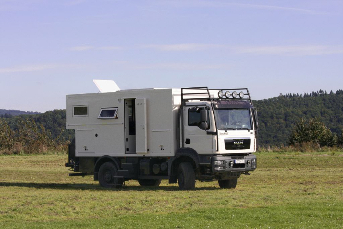Am Zusammenfluss von Rhein und Mosel werden seit gut einem Vierteljahrhundert individuelle Reisemobile gebaut – auch solche mit Allradantrieb, wenn es mal über Mitteleuropa hinaus und auf Fernreise gehen soll. Dann ist Traktion gefragt, wenn man auch dort vorwärts kommen will, wo es keine asphaltierten Pisten gibt. Vier (oder sechs, oder gar acht) angetriebene Räder kommen für einen solchen Einsatzweck gerade recht. Reichlich Zuladung ist auch nicht verkehrt, und ein wenig Platz schadet auf längeren Reisen auch nicht. Mit dreizehn Tonnen zulässigem Gesamtgewicht bietet ein