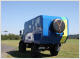 Und für diese Tour ist man mit dem U4000 bestens gerüstet. Dafür sorgt etwa sein einzigartiges Fahrwerkskonzept. Portalachsen sorgen für eine exzellente Bodenfreiheit und den ständigen Bodenkontakt aller vier Räder. Die Achsaufhängung mit Schubrohr, Querlenker und Schraubenfedern sorgt für lange Federwege und eine große Achsverschränkung (eine diagonale Achsverschränkung bis zu 30 Grad ist möglich). In Verbindung mit den kurzen Rahmenüberhängen schafft der Unimog mühelos Hindernisse, Kuppen, Hanglagen oder Böschungen. Wassergeschützte Aggregate und ein Ansaugkamin in Höhe des Kabinendachs sorgen für eine Watfähigkeit von 120 cm. Der Unimog hat Single-Bereifung (statt wie ein Allrad-Lkw Zwillingsbereifung), damit bietet er hohe Traktion bei geringem Rollwiderstand. Bequem vom Fahrersitz aus kann während der Fahrt über die Reifendruck-Regelanlage Tirecontrol der Luftdruck abgesenkt werden, so sinken die Räder auf weichem Boden nicht ein, verbesserte Traktion und Vortrieb sind das Resultat dieser technischen Maßnahme. Für sicheres Bremsen auch bei längeren Gefällstrecken oder unter großer Last hat Mercedes dem Unimog eine Zweikreis-Bremsanlage spendiert. Der Vierzylinder-Diesel schöpft aus 4.249 ccm Hubraum 160 kW / 218 PS, das zulässige Gesamtgewicht des besternten Allradlers (Radstand 3.850 mm) liegt bei 7.490 bzw. 8.500 Kilogramm. Alles, in Verbindung mit dem selbstverständlich vorhandenen Allradantrieb und Differenzialsperren an Vorder- und Hinterachse, beste Voraussetzungen für ein hoch-geländegängiges Reise-Fahrzeug der Extraklasse. Wenn es mal wirklich nicht weiter geht, kann sich der Unimog mit einer hydraulischen Sieben-Tonnen-Frontseilwinde wie Münchhausen am „eigenen Schopf“ aus dem Schlamassel ziehen. Ein Dieselvorrat von 290 Litern (plus zwei mal 20 Liter in Reservekanistern) nimmt auch längeren Strecken ohne Tankmöglichkeit ihre Schrecken, Komfortsitze im Fahrerhaus bieten beste Voraussetzungen, um diese Etappen auch ermüdungsfrei zurückzulegen.