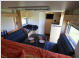 Zwei Sitzplätze bietet die mit noblem Alcantara-Bezug ausgestattete Sitzgruppe mit ihren beiden längs zur Fahrtrichtung angeordneten Bänken, unter denen sich im Doppelboden die Tanks und Stauraum befinden. Rund 300 Liter Frischwasser sind an Bord, der Abwassertank fasst 200 Liter Grauwasser. Den kompletten Heckbereich nimmt das Doppelbett ein, das mit 200 x 135 cm eine ausreichend große Liegestatt bietet. Unter dem Heckbett befindet sich ein großer, von außen zugänglicher Stauraum.