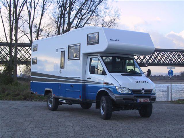 Seit 1984 baut Bocklet Reisemobile, mit einem inzwischen rund 20 Personen starken Team. Schreiner, Elektriker, Lackierer, Schlosser und Fahrzeugbauer, allesamt Spezialisten ihres Fachs. Über 400 Reisemobile haben inzwischen die Produktionshallen am Rhein verlassen, viele davon mit Allradantrieb. Auch der Mantra – identisch mit dem deutschen Mercedes-Benz Sprinter - verfügt über den traktionsstarken Allrad-Antrieb über alle Viere. Basis ist ein Fahrgestell des österreichischen Allrad-Spezialisten Achleitner mit einem Fünfzylinder-Turbodiesel. Aus 2.700 ccm Hubraum schöpft das Antriebsaggregat 115 kW / 156 PS.