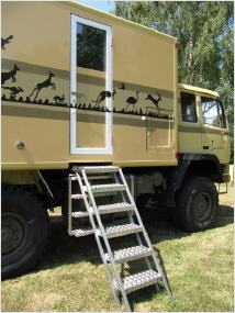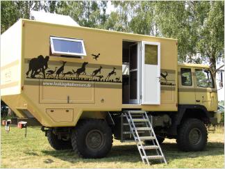Mehr als zweieinhalb Jahrzehnte Erfahrung im Bau von Fernreisemobilen hat Dipl.-Ing. Klaus Fröhlich. Bereits während seiner Studienzeit fuhr der Architekt Autotransporter in Diensten von Speditionen. Seit 1973 ist er selbst immer wieder auf Fernreisen unterwegs, durch Afrika, Arabien und Island. Unterstützt wird er von seiner Frau Pia Fröhlich, die sich um den Einkauf und das Büro kümmert. Ein Beispiel für die Angebotspalette von F&F Expedition ist die Wohnkabine Atacama 480, geeignet für Lkw mit einem zulässigen Gesamtgewicht von siebeneinhalb bis zwölf Tonnen.
