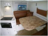 Da ist das Universal-Motor-Gerät, abgekürzt Unimog, eine durchaus geeignete Wahl. Michael Langer und Achim Bock setzen für ihre neueste Kreation namens LB-U362.I auf den extrem geländegängigen Unimog U 1550 L mit Allradantrieb, Portalachsen und Differenzialsperren an beiden Achsen als Basisfahrzeug. Auf den flexiblen Leiterrahmen packen sie einen kompakten Wohnaufbau, für den erstmals ein völlig neues GfK-Plattenmaterial eingesetzt wird, das leichter, stabiler und besser isoliert sein soll als die konventionellen Sandwich-Platten. Wände, Dach und Boden des Wohnkoffers sind kältebrückenfrei verbunden, die Türen, Klappen und Fenster mit hochwertigen Dichtungen ausgestattet, die Staub und Wasser draußen halten. Mit einer Länge von sechs Metern, 2,3 Metern Breite und einer Höhe von 335 Zentimetern bleibt selbst das Befahren schwieriger Geländepassagen noch problemlos möglich - und auch durch die Stadt lässt sich der Allradler mit dem Stern an der Haube noch recht entspannt manövrieren. Handgefertigt sind die Isolierglasfenster mit ihrer Argonfüllung, die in jeder Position sicher arretieren. Liebe zum Detail zeigt sich auch bei der Befestigung der zahlreichen Zubehörteile: Dachluken, Solarzellen, Antennen und Trägersysteme kommen – speziell im Dachbereich – ohne Befestigungslöcher aus, die potenzielle Fehlerquellen für einen Wassereinbruch darstellen könnten. Die neu entwickelte Tischkonstruktion erlaubt einen freien Durchgang vom Wohnbereich zur Fahrerkabine.