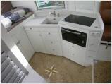 Auch ansonsten ist der Unimog mit der etwas sperrigen Modellbezeichnung LB-U362.I (Kleiner Hinweis, liebe Jungs von Langer und Bock: Dieser Wagen hat eindeutig einen schöneren und "griffigeren" Namen verdient) bestens ausgestattet, die Besitzer müssen auf kaum eine Annehmlichkeit verzichten. Die Küche punktet mit einem Induktionsherd sowie einem Mikrowellen-Ofen mit Backfunktion, auf Maß gefertigt sind der in GfK-Bauweise hergestellte Kompressor-Kühlschrank und die bis - 22°C kühlende Tiefkühlbox. Ein 20 Liter Schiffsboiler sorgt für Warmwasser, selbst eine „Pisten-Waschmaschine“ in GfK-Bauweise mit Temperatur-Mischregler ist im Wohnaufbau fest einlaminiert.