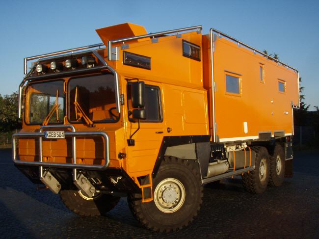 Orangework: Für all jene Zeitgenossen, die keine Gelegenheit hatten nach Bad Kissingen zu reisen - oder einen Blick in den MAN KAT 1, ausgebaut von Orangework (www.orangework.de) aus Köln, zu werfen. Stephan Schmidt hat mit seinem Team, das zur "Abenteuer & Allrad" auch einen reisetauglichen Land Rover Defender zeigte, blitzsaubere und handwerklich absolut gekonnte Arbeit hingelegt. Handwerkliche Qualität erster Sahne. Mit einem tollen Raumgefühl. Na ja, bei dem zur Verfügung stehenden Raum auch kein Wunder. Fehlt ja nur noch, dass der Dreiachs-MAN eine eigene Postleitzahl bekommt.