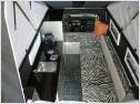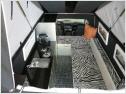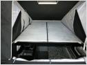 Dem Chassis hat ORC eine 290 cm lange Wohnkabine verpasst, gefertigt aus GfK-Wabenverbundplatten und Carbon-Formteilen. Diese Bauweise ist robust und stabil, aber dennoch leicht: Die Kabine soll leer gerade mal knapp über 210 Kilogramm wiegen. Um im Stand Stehhöhe zu erreichen und dennoch ein für die Verschiffung per Übersee-Container taugliches Höhenmaß nicht zu überschreiten, verfügt der Wohnaufbau über ein Aufstelldach. Mit 295/75R16-er Bereifung ist das Expeditionsmobil - bei abgesenktem Dach - 239 cm hoch. Bei aufgestelltem Dach können die drei mit Doppel-Reißverschlüssen und Fliegengittern versehene Fenster des Oberstübchens geöffnet werden, das bringt Licht und Luft in den Wohnraum. Auf der Fahrerseite ist in der Kabinenwand ein Ausstellfenster von Seitz verbaut, auf der Beifahrerseite sind es zwei.
