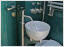 Der Kombüse gegenüber angeordnet ist das Sanitärabteil im Einstiegsbereich zur Wohnkabine. Über eine Tür ist der kombinierte Dusch- und Toilettenraum, ausgestattet mit Porzellan-WC mit Wasserspülung, zum Innenraum hin abtrennbar. Ausgesprochen Design-orientiert präsentieren sich die Armaturen sowie die Waschsäule mit dem schwenkbaren Waschbecken. Hübsch, so was hätte manch einer auch gerne Zuhause. Nicht nur schick, sondern auch praktisch ist der Heizkörper, der auch als Handtuchtrockner dient. Logisch, dass auch eine Außendusche an Bord ist.