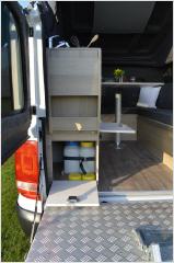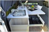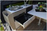 Auf der Fahrerseite ist der Küchenblock untergebracht, er lässt sich durch ein ausklappbares Tablett erweitern. Ein transportabler Spirituskocher dient zur Zubereitung kleiner Mahlzeiten oder einer Tasse Kaffee oder Tee "outdoor" oder im Fahrzeug. Bei geöffnetem Fenster kann der ausziehbare Waschbecken-Einhebelmischer mit Start /Stopp-Funktion auch als Außendusche genutzt werden. Selbst eine tragbares WC findet seinen Platz, in der Sitzkiste zum Fahrerhaus hin. Durch Absenken der Tischplatte mit ihrem herausnehmbaren Tischfuß verwandelt sich die Sitzgruppe in ein Doppelbett. Vertrieben wird das komplette Fahrzeug über die Firmen Road Ranger, Robel-Mobil und Dipa Reisemobilbau. Der Einstiegspreis für das Zwei-Personen-Mobil liegt bei 39.520 Euro.