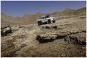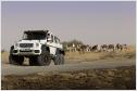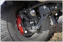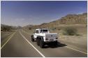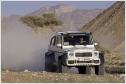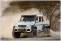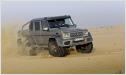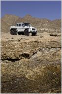 Das dort befindliche Ladegut schafft der G 63 AMG 6x6 auch an Orte, an denen andere Mobile längst kapituliert haben. Beste Voraussetzungen für höchste Geländetauglichkeit schaffen die sechs angetriebenen Räder, eine Geländereduktion, die Portalachsen, fünf während der Fahrt sperrbare 100-prozentige Differenziale und eine während der Fahrt bedienbare, aktive Reifendruck-Regelanlage. Sie variiert den Druck in den üppig dimensionierten 37-Zoll-Pneus. Der Fahrer steuert vom Innenraum aus den Reifendruck für die Vorder- und die beiden Hinterachsen getrennt über Schalter in einer Dachkonsole und kontrolliert ihn per Manometer. Dazu stehen ein leistungsstarker Kompressor und vier 20 Liter große Druckbehältern seitlich in den hinteren Radhäusern zur Verfügung. So ausgestattet erhöht die Anlage in weniger als 20 Sekunden den sandgerechten Luftdruck von 0,5 bar in den sechs Reifen mit einem Durchmesser von einem Meter auf straßentaugliche 1,8 bar. Bei üblichen Rad-/Reifenkombinationen ist bei Fahrten im Sand ein Absenken des Luftdrucks auf ein bar meist die unterste Grenze. Unterhalb dieses Drucks können die Reifen bei Lenkmanövern abspringen, eindringender Sand kann die Dichtfläche zwischen Reifen und Felge unterwandern und so einen schleichenden Plattfuß verursachen. Beim G 63 AMG 6x6 kommen spezielle, zweiteilige 45,7 cm (18 Zoll) große Beadlock-Felgen zum Einsatz. Der Reifen wird bei der Montage zwischen den beiden Felgenhälften und einem inneren Beadlock-Ring so fest eingeklemmt, dass er auch bei völligem Luftverlust nicht von der Felge abrutschen und Sand nicht eindringen kann.