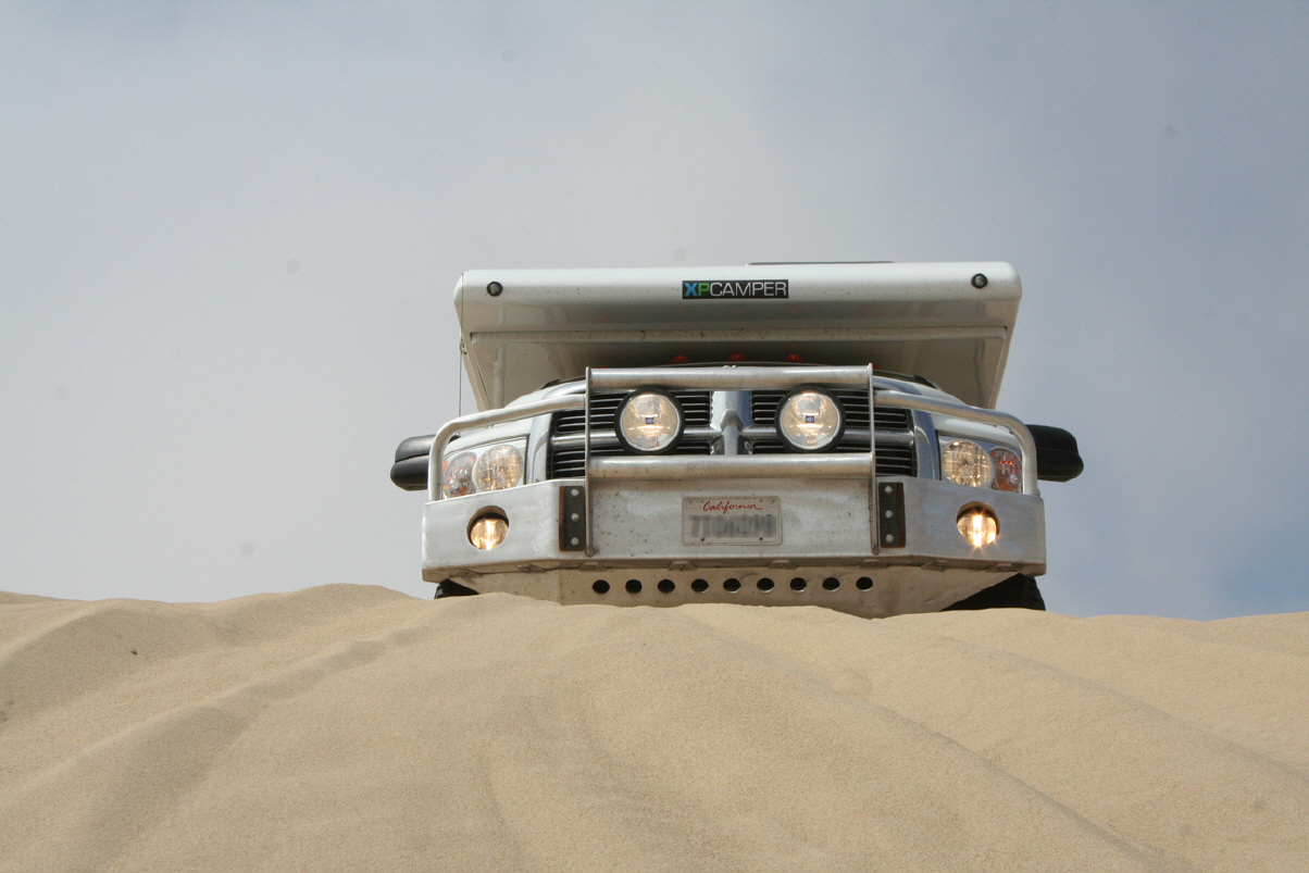 Der XPCamper ist ein leichter Camper. Und er ist in Nordamerika der erste Camper mit Aufstelldach, der konsequent Dieseltechnik (von Webasto) nutzt, etwa für Heizung und Kocher. Das Aufstelldach fährt hydraulisch per Knopfdruck hoch, und bietet dann Stehhöhe im Wohnbereich. Die Kabine selbst ist in Monocoque-Bauweise aus GfK gefertigt, und damit ausgesprochen stabil.