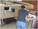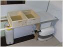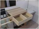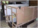 Komplett aus Holz wurde diese Absetz-Kabine gefertigt. Ein Holzgrundrahmen mit einer Siebdruck-Beplankung.