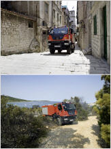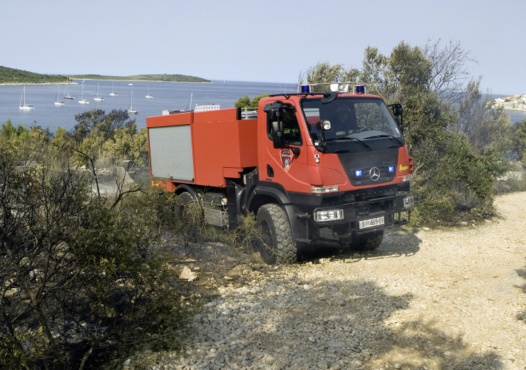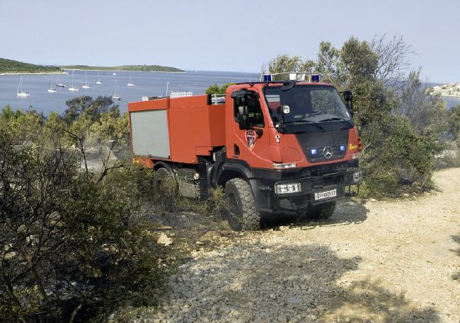 Premiere für den Unimog U 20 als Feuerwehr: An die Stadt Ŝibenik in Kroatien wurde der erste Unimog der kompakten Baureihe als TLF 10/25 ausgeliefert. Der U 20 ist durch seine Wendigkeit (Radstand 2,7 m, Fahrzeughöhe 2,70 m, Breite 2,15 m, Wendekreis 12,6 m) und seinen Fahreigenschaften auf schwierigem Terrain für den Einsatz als Feuerwehr-Fahrzeug besonders geeignet. Das Tanklöschfahrzeug kann in der historischen Altstadt über Treppenstufen fahren und so jede der engen Gassen erreichen. Möglich machen das die großen Böschungswinkel von 30 Grad hinten und 27 Grad vorn sowie die Portalachsen, typisches Merkmal aller Unimog-Baureihen. Der Feuerwehr-Unimog verfügt über Differenzialsperren an Vorder- und Hinterachse sowie permanenten Allradantrieb. Damit ist der U 20 mit seinem zulässigen Gesamtgewicht von 9,3 Tonnen auch für die Bekämpfung von Waldbränden geeignet.
