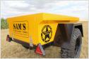 Den Trailer gibt es in zwei Baugrößen, als Sam und als Sammy, der gewissermaßen den kleineren Bruder darstellt. Sammy basiert auf dem Konzept und den Abmessungen des militärischen Originals (M 100 und M 416). Mit seinen Proportionen passt der 250 Kilogramm wiegende und 2.900 mm lange Anhänger gut zu aktuellen SUV´s. Der rund 300 Kilogramm wiegende und 3.250 mm lange Sam hingegen ist eine massstabsgetreue Vergrößerung von Sammy, er ist quasi "gezoomt" und eignet sich für größere Geländewagen und SUV's. Beide Modelle basieren auf gleichen Materialien: Der gesamte Body ist solide und dennoch leicht, er besteht aus lasergeschnittenem, CNC-gekantetem und geschweißtem Aluminium mit einer Stärke von drei Millimetern und wird von einem massiven Rechteck-Rohrleiterrahmen aus Stahl getragen. Sowohl das Aluminium als auch der verzinkte Stahl sind zusätzlich grundiert und pulverbeschichtet, für eine lange Lebensdauer. Alle Beschläge und Normteile werden aus massivem Edelstahl gefertigt. Alle Bauteile stammen aus dem deutschen Fahrzeugbau.