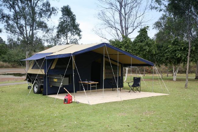 Die Faltzelte werden aus Australien importiert, sind in verschiedenen Größen erhältlich und werden aus hochwertigem 12 OZ und 13 OZ Ripstop Canvas gefertigt, einem strapazierfähigen Baumwollmischgewebe.