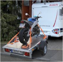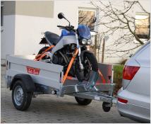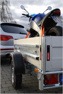 Der ungebremste Anhänger hat ein zulässiges Gesamtgewicht von 750 Kilogramm und drei Jahre Garantie. Er verfügt über ein vollverzinktes Chassis, 40 cm hohe Aluwände, eine Zugkupplung mit integriertem Schloss und zehn Zurrösen. Lieferbar ist Tante Berta in verschiedenen Versionen: Etwa als Kastenaufbau mit Alubordwänden und versenkten Verschlüssen (Innenmaße 202 x 105 x 40 cm) oder zum Transport eines Motorrads mit Vorderrad-Wippe zum Festzurren des Motorrads. Die Version „box&bike“vereint beide Varianten und ist für Motorradfahrer geeignet, die auch mal anderes Ladegut transportieren wollen. Preis: Ab 2.290 Euro.
