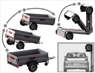 Entwickelt und patentiert hat den Anhänger mit dem etwas skurrilen Namen die Firma „Stefan Wenner Technologies“ aus Empfingen. Mit einem Klappmechanismus werden die Wände des Kastenaufbaus nach innen geklappt, die Ladefläche wird nach vorne verschoben und die Kotflügel weggeschwenkt. Danach ist der Anhänger insgesamt 70 Zentimeter kürzer und kann noch bequem in der Garage herumgeschoben werden. Er kann in einer Standardgarage sowohl an einer Seitenwand als auch an der Stirnwand einfach senkrecht auf die Heckklappe aufgestellt werden. Die größte Platzeinsparung wird aber erreicht, wenn die Räder beim Aufstellen nach oben gerichtet sind. Sie ragen dann über den PKW und brauchen wenig Platz. Wenner bietet ein Handwindenset an, zu dem eine Seilwinde, Umlenkrollen und Wandbefestigungen gehören. Das Zusammenklappen und Aufstellen mit der Handwinde soll (bei einer Mindesthöhe der Garage von 223 cm) weniger als zwei Minuten dauern.