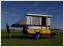 Doch vor den geruhsamen Schlaf haben die Konstrukteure erst einmal den Aufbau gesetzt. Der klappt – im Wortsinne – recht einfach. Den Anhänger abkuppeln, in die Waagerechte bringen, dann werden die Sicherungsschnallen des Caravans geöffnet und per Kurbel das Dach des Hängers geliftet. Wenn das Dach oben ist, lassen sich die beiden Erker mit den Betten kinderleicht herausziehen, mit ja zwei Stangen stützen sich die Liegeflächen gegen den Trailer ab. Noch schnell die seitlichen Zeltplanen per Gummizug spannen und die unter dem Dach hängende Metalltür absenken und einhängen, und schon ist die rollende Behausung – fast – fertig. Nur noch aus dem gegenüber der Eingangstür angeordneten Küchenblock Spüle und Zweiflamm-Kocher hochklappen, das war’s dann. Jetzt bietet der Evolution E1 – auf über fünfeinhalb Meter Länge – anständig Platz.