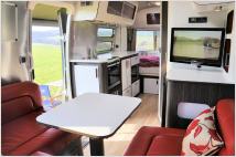 Der Airstream 534 ist ein autarker Reisecaravan für Fans des klassischen Designs. Die Preisliste startet bei 59.800 Euro, in der Serienausstattung sind die Alde-Warmwasserheizung, Thetford Keramik Toilette, Dreiflammen-Herd mit Backofen, Dometic Kühlschrank und ein Audio System mit vier Lautsprechern enthalten.