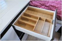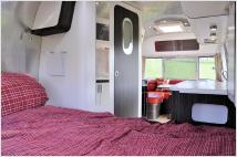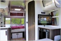 Nachdem im vergangenen Jahr der Airstream 684 gründlich überarbeitet wurde, zieht jetzt der kleine Bruder Airstream 534 nach. Optimiert wurde der Grundriss des Reise-Airstreams, der Platz für zwei Kinder und Erwachsene bietet. Das Bad tauscht die Position mit dem Kleiderschrank, die Fronten des Mittelblocks wurden leicht angeschrägt, was den Grundriss großzügiger erscheinen lässt. Zum Einsatz kommen neue, aus der Airstream 684-Serie bekannte Materialien wie braunes Zebranoholz, eine optionale Corian Küchenabdeckung mit dem großen Franke Edelstahlspülbecken sowie schwarzes und rotes Leder. Auszüge und Türen haben nun Chromgriffe und Softclose-Funktion.