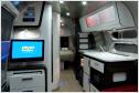 Das 1.900 Kilogramm schwere Modell ist für den Einsatz als Büro- oder Konferenzmobil konzipiert, lässt sich aber problemlos und rasch auch zum Reise-Caravan umbauen. Den Büro-Bereich betritt man durch eine zweite Tür im Heck, so werden geschäftliche Besprechungen im Bug nicht gestört. Dort befindet sich eine große Sitzgruppe für Besprechungen, im Heck ist der Schreibtisch untergebracht. Der Bürobereich des Airstream 684 Studio lässt sich für den Einsatz im Freizeitbereich, auf Messen oder längeren Dienstreisen zum Schlafzimmer umgestalten. Auch die Frontlounge des Caravans mit einem zulässigen Gesamtgewicht von 2,68 Tonnen (Preis ab 83.585 Euro) kann zur Schlafgelegenheit umgebaut werden.