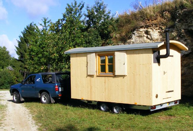 Der geschätzte Leser dieser netten Homepage, die sich mit allem befasst, was Räder und einen Motor hat (und jenseits des Mainstreams liegt), könnte langsam den Eindruck bekommen, dass alle (oder beinahe alle) Caravans aus Holz bestehen. Tja, da müssen wir jetzt gemeinsam durch – denn es geht schon wieder um: Holz-(Wohn-)Wagen. Bernd Wonner aus Hainsfuth hat sich dem Bau von Schäferwagen (www.schaeferwagen.de) nach historischem Vorbild verschrieben. Er fertigt sie in verschiedenen Größen und Ausführungen. Beispielsweise mit restaurierten Holzwagenrädern und Deichsel aus Massivholz als reinen „Stand-Wagen“. Gedacht ist der für den Einsatz hinter einem Schlepper mit 25 km/h-Zulassung (mit Metallspeichenrädern) oder mit Luftbereifung für flotte 80 km/h. Wenn es etwas schneller auf Urlaubsreise gehen soll.