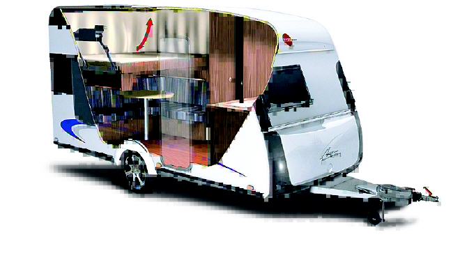 Wer dachte, die Möglichkeiten der modernen Caravan-Gestaltung seien ausgereizt, für den hat Bürstner jetzt mit einer Neuentwicklung eine Überraschung. Der Averso Plus debütiert auf dem Caravan Salon. Der Averso Plus ist der erste Volumen-Caravan mit einem serienmäßigen Hubbett. Bei kompakten Maßen bietet die Innenausstattung eine Schlafstätte für zwei, ohne dass deswegen eine Sitzgruppe umgebaut werden müsste. Das Hubbett wird von der Decke über der Hecksitzgruppe abgesenkt. Es schwebt bei Bedarf, fest arretiert, wenige Zentimeter über den Polstern der Sitzlehnen darunter. Den Einstieg in die 200 x 145 Zentimeter große Liegefläche erleichtert eine Leiter, die für gute Zugängigkeit links oder rechts an der Umrandung des Hubbetts eingehängt werden kann. Clou der Konstruktion: Unter dem abgesenkten Bett bleibt genügend Raum, dass ein Kind auf dem Polster der Seitensitzbank eine kuschelige Schlafmöglichkeit findet. Der Enkel kann also, zu Besuch bei den Großeltern, dort auch übernachten.