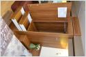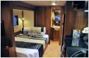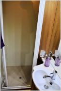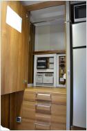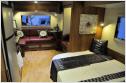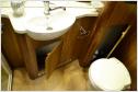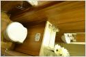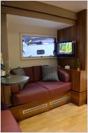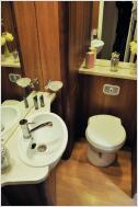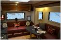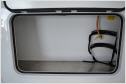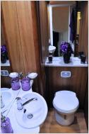 Der Innenausbau der Caravans überzeugt mit einer Kombination aus dunklem Walnuss Hartholz-Furnier und Edelstahl. Das Bad im Heck bietet eine vollwertige bodengleiche Duschkabine und eine Dometic C260 Vollkeramik-Toilette.