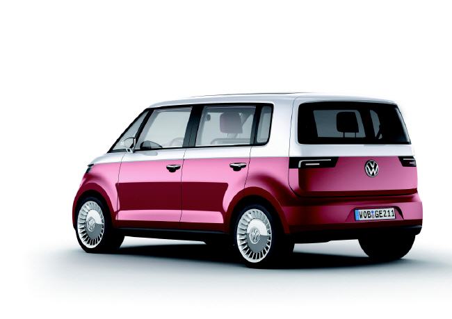 Die Geschichte des neuen Bully begann vor einem Jahrzehnt, im Jahre 2001, mit der Microbus-Studie. Schon seinerzeit hatten die Fans gehofft, dass es die Studie zur Serienreife schaffen würde. Aber offenbar müssen auch bei VW manche Visionen erstmal reifen. Der neue Bully wurde erstmals auf dem Genfer Auto Salon 2011 präsentiert, kompakter und erschwinglicher als die damalige Studie. Angetrieben wird der neue, sechssitzige Bus, ganz zeitgemäß, von einem emissionsfreien, vor der Vorderachse angeordneten Elektromotor mit 85 kW und 270 Newtonmetern. Seine Energie holt der lautlose Motor aus einer maximal 40 kWh großen Lithium-Ionen-Batterie. VW spricht von einer möglichen Reichweite von bis zu 300 Kilometern. In 11,5 Sekunden soll der neue Bulli von 0 auf 100 km/h beschleunigen, bei 140 km/h wird er elektronisch abgeregelt. Die Batterie des 1.450 Kilogramm wiegenden Busses verbirgt sich Bulli hinter den Schwellern im Sandwichboden. Sie soll an einer speziell für Elektrofahrzeuge ausgelegten „Stromzapfsäule“ in weniger als einer Stunde aufgeladen werden können. Auch die Benzin- und Diesel-Direkteinspritzer von Volkswagen mit 1,0 bis 1,4 Liter Hubraum sind Teil des Konzepts.