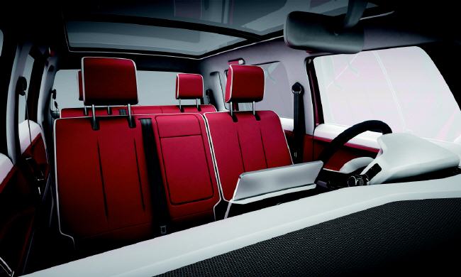 Wie der T1 verfügt auch der neue Bulli vorn über eine durchgängige Sitzbank, auch hinten gibt es Platz für Drei. Aus den Sitzen lässt sich eine Liegefläche bauen,