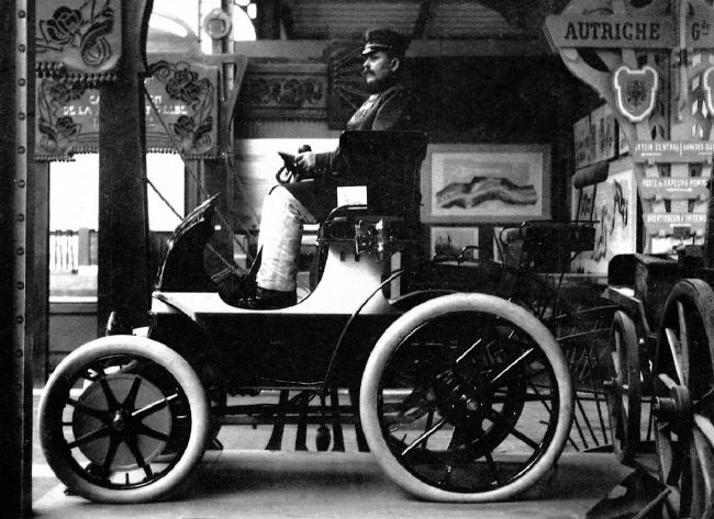 Lohner-Porsche mit elektrischem Radnabenantrieb auf der Weltausstellung in Paris