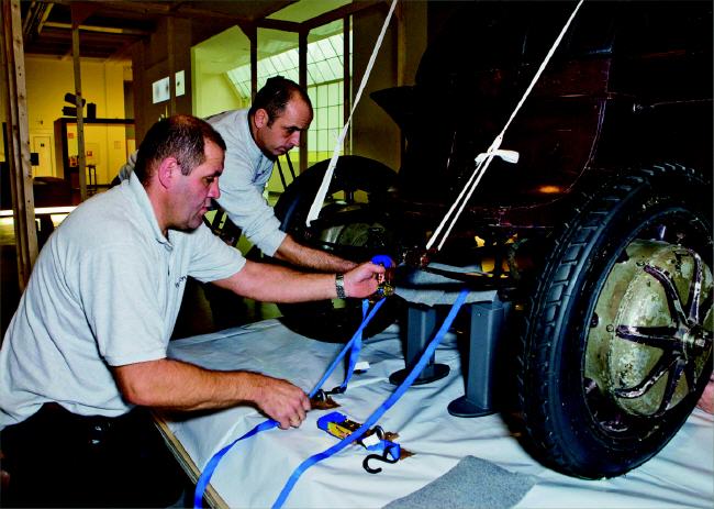 Die Elektromotoren in den beiden Holzspeichenrädern, von denen jedes unterm Strich 115 Kilogramm wiegt, leisten im Normalbetrieb jeweils 1,8 kW / 2,5 PS bei 120 U/min. Damit bringen sie den Zweisitzer auf 37 km/h Dauer-Höchstgeschwindigkeit, die Minimalgeschwindigkeit liegt bei 17 km/h. Besonders sportliche Fahrer können mit insgesamt 10 kW / 14 PS Leistung der beiden Motoren sogar knapp 50 km/h schnell fahren – allerdings nur etwa 20 Minuten lang. Die 410 Kilogramm schwere Blei-Batterie besteht aus 44 Zellen. Sie bringt es mit 300 Ah und 80 Volt auf 24 kWh Energieinhalt. Das langt für bis zu 50 Kilometer Reichweite. Eine elektrische Bremse wirkt auf die Vorderräder, eine mechanische Bandbremse auf die Hinterräder. Sperrklinken an der Hinterachse verhindern ein Zurückrollen des Mobils an Steigungen. Die Holzspeichenräder haben vorn einen Durchmesser von 650, hinten von 950 Millimeter. Am Gesamtgewicht von einer Tonne ist die Batterie mit immerhin 410 Kilogramm beteiligt, jedes der motorisierten Vorderräder mit 115 Kilogramm.