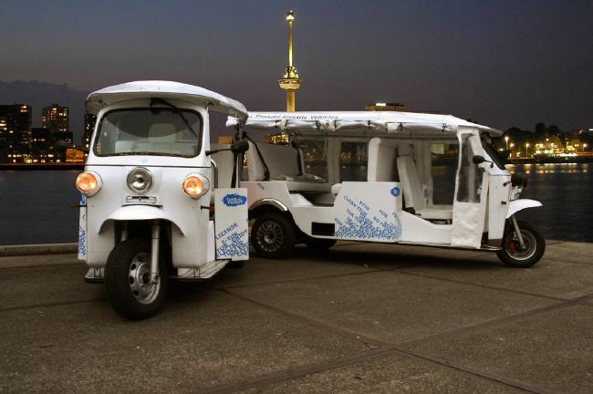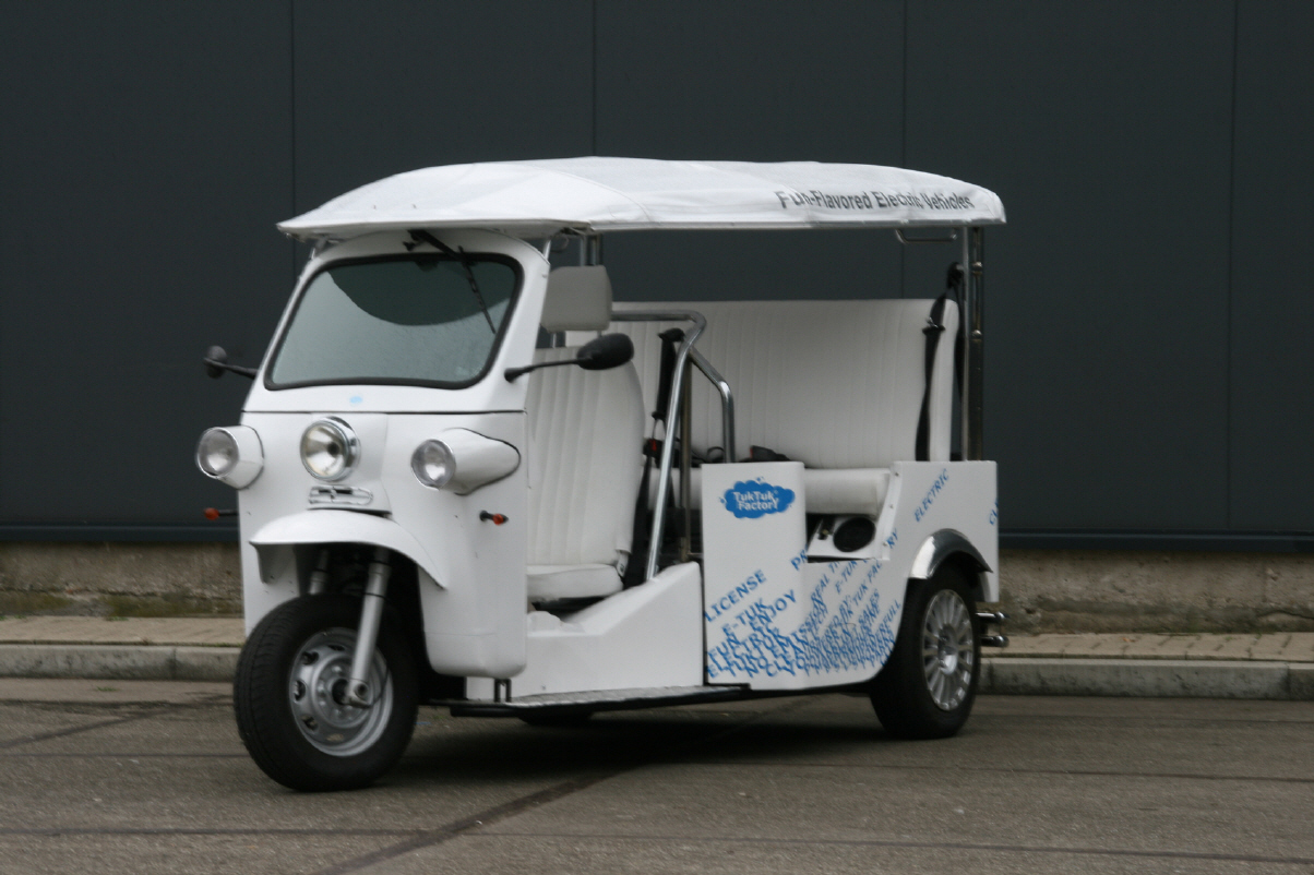 Die Tuk Tuk Factory entwickelte als erstes Unternehmen elektrische Autorikschas und bekam gleich für drei Modelle die Zulassung. Um die Ansprüche des europäischen Marktes und der europäischen Vorschriften zu erfüllen, wurde das Fahrzeug von Grund auf neu konzipiert. Chefingenieur Dennis Harte: „Wir nahmen am Anfang die größte Batterie, die wir uns vorstellen konnten, und entwickelten das Fahrzeug um die Batterie herum. Die Bleibatterie mit 15 kWh treibt einen leisen und wartungsfreien Gleichstrommotor an. Das Chassis ist so ausgelegt, dass es die 400 Kilo der riesigen Batterie tragen kann.“ Die elektrischen Autorikschas seien ideal für kurze Fahrten in der Stadt. Die Fahrzeuge sollen lautlos, abgasfrei und günstig im Unterhalt sein. In Amsterdam sind bereits sechs und in Rotterdam zwanzig Prototypen seit einem Jahr im Einsatz. Nach den Erfahrungen des Herstellers ist der wichtigste Erfolgsfaktor eine Batteriekapazität für eine achtstündige Fahrt in der Stadt. Die große Batterie der Autorikscha soll für 70 - 80 Kilometer Fahrstrecke ausreichen.