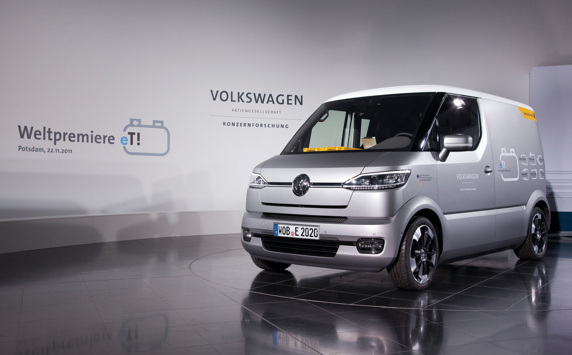 Die Volkswagen Konzernforschung hat sich, gemeinsam mit der Deutschen Post und der Braunschweiger Hochschule für Bildende Künste Gedanken über den Transporter der Zukunft gemacht. Heraus gekommen ist der eT!, ein neues Fahrzeugkonzept für die Zustell- und Logistikbranche. „Wir haben uns vorgenommen, ein sehr emotionales Nutzfahrzeug zu entwerfen“, so Prof. Dr. Jürgen Leohold, Leiter der Volkswagen Konzernforschung: Man habe die Prozessabläufe und Kundenbedürfnisse im Detail analysiert. Daraus habe man die Weiterentwicklung des Segments der Zustell- und Kurierfahrzeuge abgeleitet. „Dabei haben wir besondere Forschungsschwerpunkte auf das emissionsfreie Fahren und die Platzverhältnisse in den Innenstädten, teilautomatische Fahrfunktionen – welche die Arbeitsprozesse sinnvoll unterstützen und vereinfachen – sowie die Integration neuer Kommunikationstechnologien gelegt“, so Prof. Dr. Leohold.