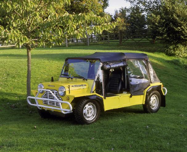 Nach fünfjähriger Entwicklungszeit wird der Austin bzw. Morris Mini Moke im August 1964 der Öffentlichkeit vorgestellt wurde. Er ist ein einfaches Fahrzeug, nur ein mit Vinyl beschichtetes Segeltuch-Faltdach und eine klappbare Windschutzscheibe bieten den Insassen Schutz vor Wind und Wetter. Der Moke ist als Nutzfahrzeug konzipiert, serienmäßig sind nur ein Fahrersitz und ein einziger Scheibenwischer montiert. Schon Beifahrersitze und Seitenfenster zählen zur Sonderausstattung.