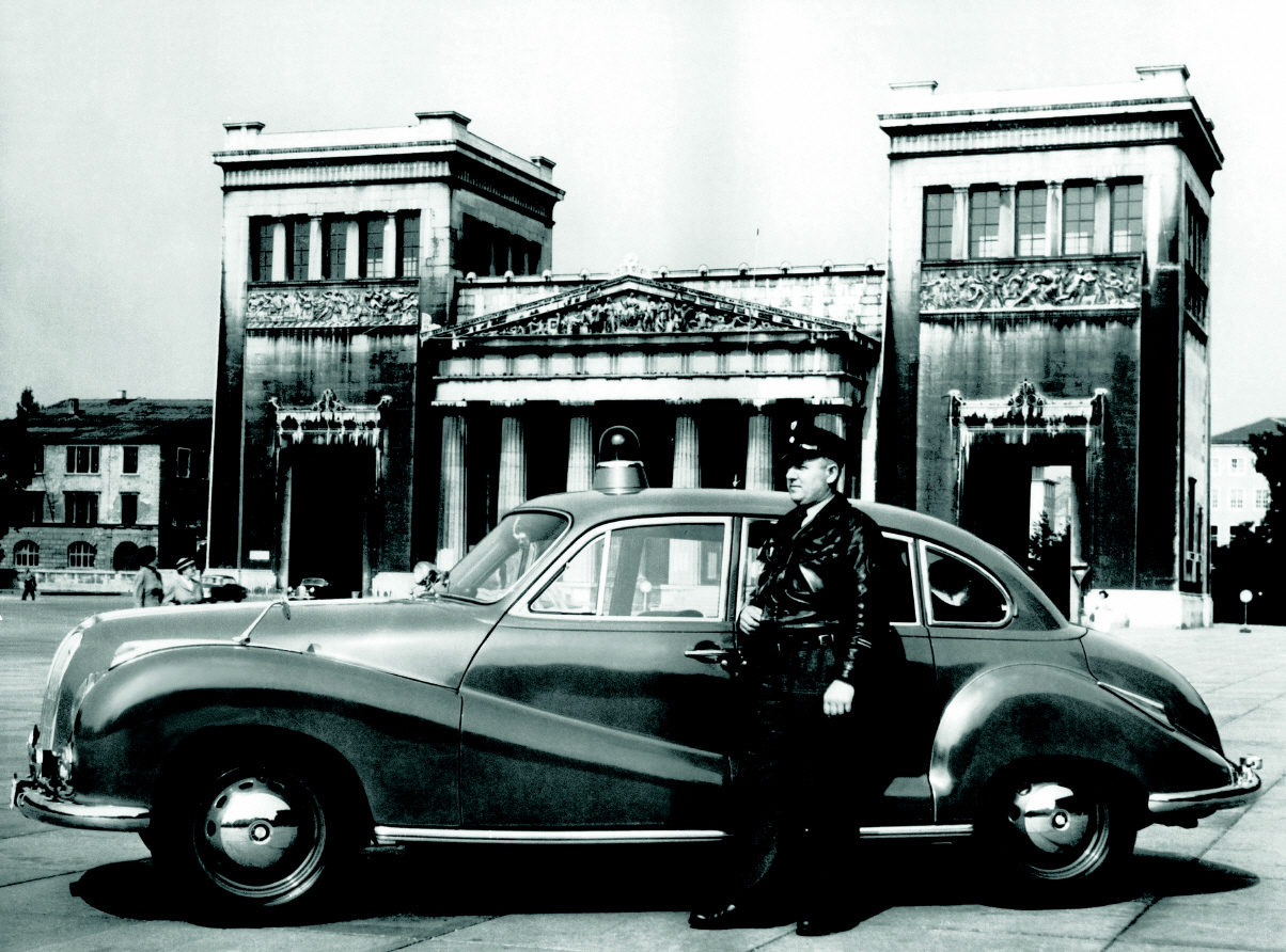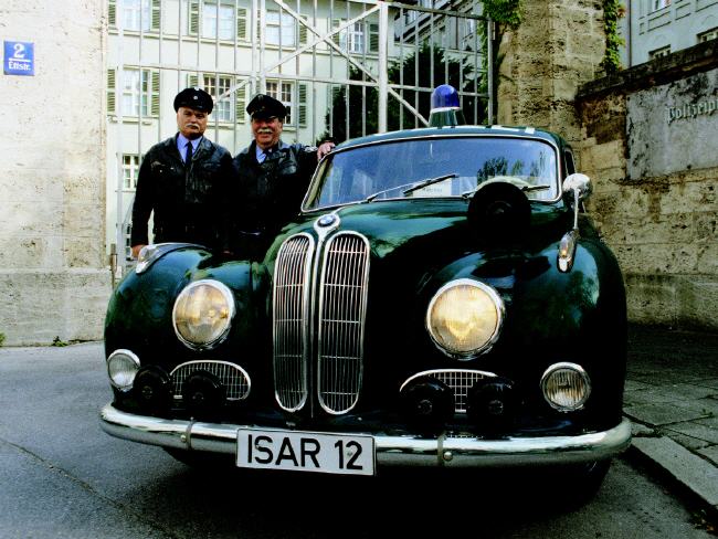 Der BMW 501, der als Serienheld auf Rädern zum Einsatz kam, war die erste Nachkriegslimousine von BMW. In der Spitzenvariante hatte sie den ersten serienmäßigen Leichtmetall-Achtzylinder unter der Haube. Wegen seiner geschwungen Formen wurde der Viertürer im Volksmund liebevoll „Barockengel“ genannt. Als Dienstfahrzeug der „Funkstreife Isar 12“ wurde das Fahrzeug rasch zum Wahrzeichen der Münchner Polizei. Die starke und schnelle Limousine bewährte sich im realen Polizeialltag in der bayerischen Hauptstadt. Ihr zwei Liter großer Sechszylindermotor leistete 72 PS. Damit waren die Beamten bei Verfolgungsjagden bis zu 145 km/h schnell. Nur wenige andere Wagen erreichten oder überflügelten zu jener Zeit diese Geschwindigkeit. Zwischen 1955 und 1958 liefen bei BMW exakt 3.495 Limousinen und Cabriolets des 501 mit Sechszylindermotor vom Band. Sogar bis 1963 wurde die Karosserievariante mit Achtzylindermotor gebaut, zuletzt in der Version als BMW 3200 S mit 160 PS.