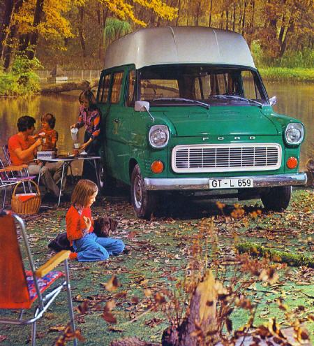 die Zusatzbezeichnung „Taunus Transit“ und begründet damit die legendäre Baureihe. Ende der 50er Jahre bringt es das erste Ford Wohnmobil von Westfalia nur auf bescheidene Stückzahlen. Die Einrichtung baut Westfalia nicht nur für den Ford, sondern auch für Transporter von Hanomag, Mercedes-Benz und Opel. Die Ausstattung ist aufwändiger als bei den VW-Ausbauten. Es gibt einen zweiflammigen Gaskocher, einen Kühlschrank und auf Wunsch auch eine Gasheizung. Eine weitere Sonderausstattung stellt das so genannte Dormobil-Dach, ein seitlich angeschlagenes Aufstelldach mit zwei Faltbetten, dar. Im Jahr 1965 wird die Produktion des FK 1000 eingestellt, die Entwicklung eines Nachfolgers steht an.