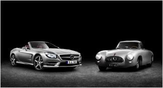 Mercedes-Benz meldet sich mit diesen Aktivitäten - nicht nur – im Motorsport zurück. Die Rennerfolge bringen der Traditionsmarke die Strahlkraft zurück, die sie vor dem Zweiten Weltkrieg genoss. Das Debütjahr des 300 SL ist vom Kriegsende noch nicht weit entfernt. Trümmerlandschaften gehören in Deutschland und weiten Teilen Europas noch zum Alltagsbild. Die Volkswirtschaften erholen sich, aber noch sind die Nachwirkungen der Jahre 1939 bis 1945 mehr als deutlich spürbar. In dieser Zeit bringt Mercedes-Benz den 300 SL Rennsportwagen – und erntet durch die legendären Siege weltweit größte Beachtung. Etwa in den USA. Der dortige Mercedes-Benz Importeur Max Hoffman fordert einen entsprechenden Seriensportwagen. Er will den neu entstandenen Mythos SL für Kunden – im besten Wortsinne – „erfahrbar“ machen. Im Februar 1954 wird der 300 SL (W 198) „Flügeltürer“ auf der International Motor Sports Show in New York präsentiert. Er gerät schnell zu einer Ikone des Automobilbaus. Zeitgleich debütiert der Typ 190 SL (W 121) als das alltagstauglichere und erschwinglichere Pendant. Er geht 1955 in Produktion. Die beiden Modelle legen den Grundstein für die Tradition der Seriensportwagen der SL-Reihe.