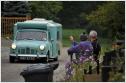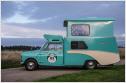 In einer Zeit, in der ein VW California als "kompakter" Camper gilt, darf ein Reisemobil auf Basis des klassischen Mini mit Fug und Recht als "klein" - oder eben als "mini" - bezeichnet werden. Die Wildgoose, die "wilde Gans", ist trotz der geringen Abmessungen ein Hingucker ersten Ranges. Und ein Beleg für die zahlreichen Karosserievarianten, mit denen der "alte" Mini immer wieder verschiedene, neue Kunden- und Käufergruppen ansprach. Auf der Basis des schicken und einst höchst revolutionären Kleinwagens in seiner Van-Version stellten vor rund einem halben Jahrhundert britische Karosseriebauer ein platzsparendes Campmobil auf die schmalen Reifen. Zwischen 1963 und 1968 sollen bei der Firma Wildgoose Ltd. in Worthing, Sussex, rund 60 der kleinen Wohnmobile gefertigt worden sein. Seriennummer 18 tritt in kleidsamem Elfenbein/Türkis an und erinnert in der Farbgebung ein wenig an die oftmals in Pastelltönen gehaltenen britischen Cakes und Plätzchen. Im Jahre 1965 wurde Nummer 18 produziert, als Mini Wildgoose „Brent“ Super V. E. B. stellte sie zu einem Preis von 998 Britischen Pfund seinerzeit das Topmodell der Mini-Mobil-Erbauer aus Worthing dar, die drei Ausführungen der Wildgans im Angebot hatten. Heute ist das Exemplar eines von schätzungsweise gut zwei Handvoll Exemplaren, die weltweit überlebt haben dürften. Für den Vortrieb sorgt ein Vierzylinder mit - aus heutiger Sicht - eher mageren 850 Kubikzentimeter Hubraum, die für eine Höchst"leistung" von 25 kW sorgen, was 34 Pferdestärken entspricht. Gekoppelt ist das Antriebsaggregat an eine Viergang-Schaltung, geführt über einen elend langen Schalthebel und mit unsynchronisiertem ersten Gang. Mit 34 Pferchen unter der Haube kann der Mini plus Aufbau zwar keine Bäume ausreißen, aber mit reichlich Anlauf und Geduld soll der Legende nach eine Höchstgeschwindigkeit von maximal 116 km/h möglich gewesen sein. Wenn der Fahrer sich und dem Vehikel dieses Tempo denn zumuten wollte. Denn die Wildgans von der Insel mag unpassende Hektik nicht wirklich. Kein Wunder bei einem Fahrzeug, dass ein bisschen so wirkt als sei es beim Rückwärtsfahren in einen Schuppen geraten - den es jetzt hinter sich herzieht.